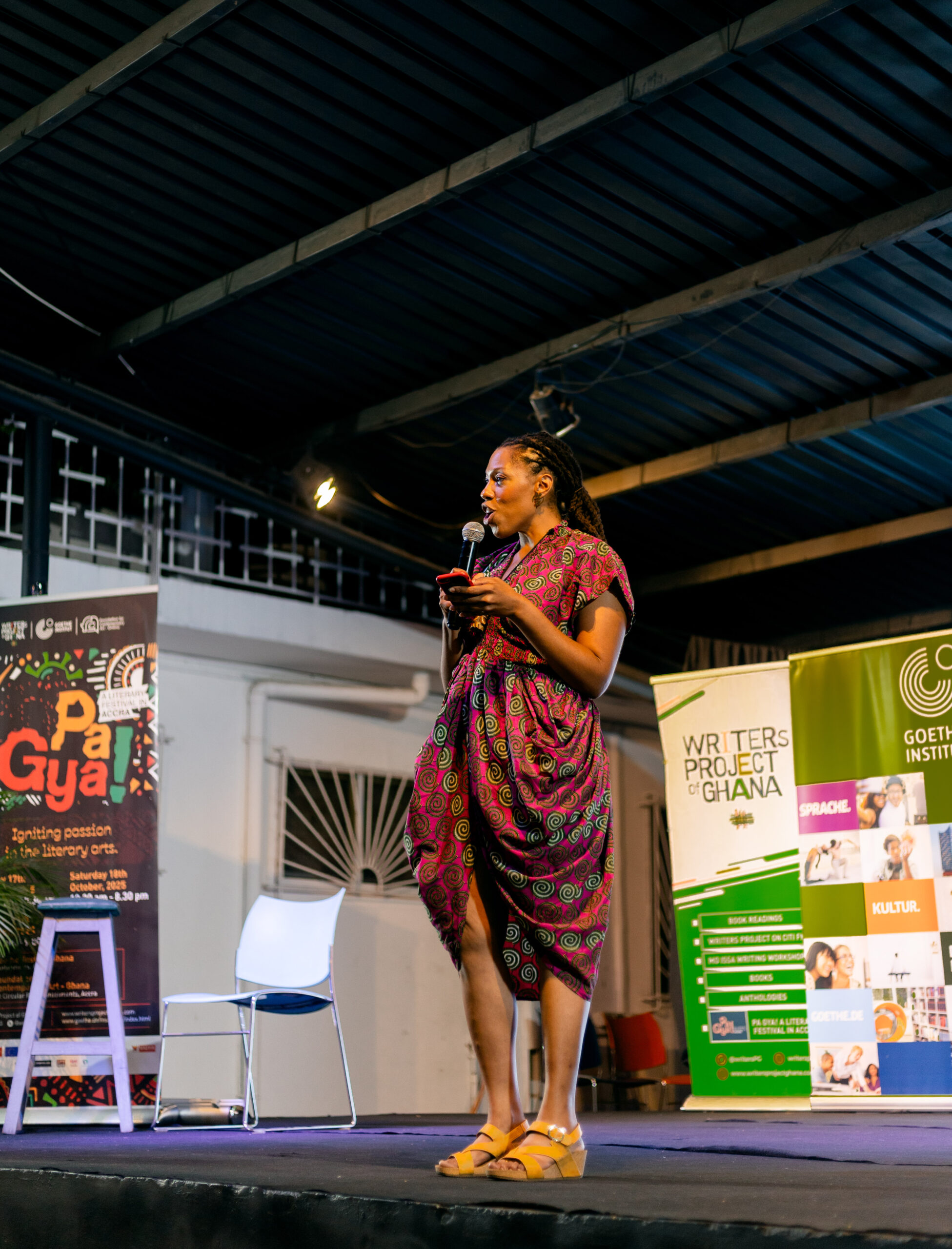 Me reading at Pa Gya! Literary Festival, Accra, Ghana, 2025. Photo by ~visly.
